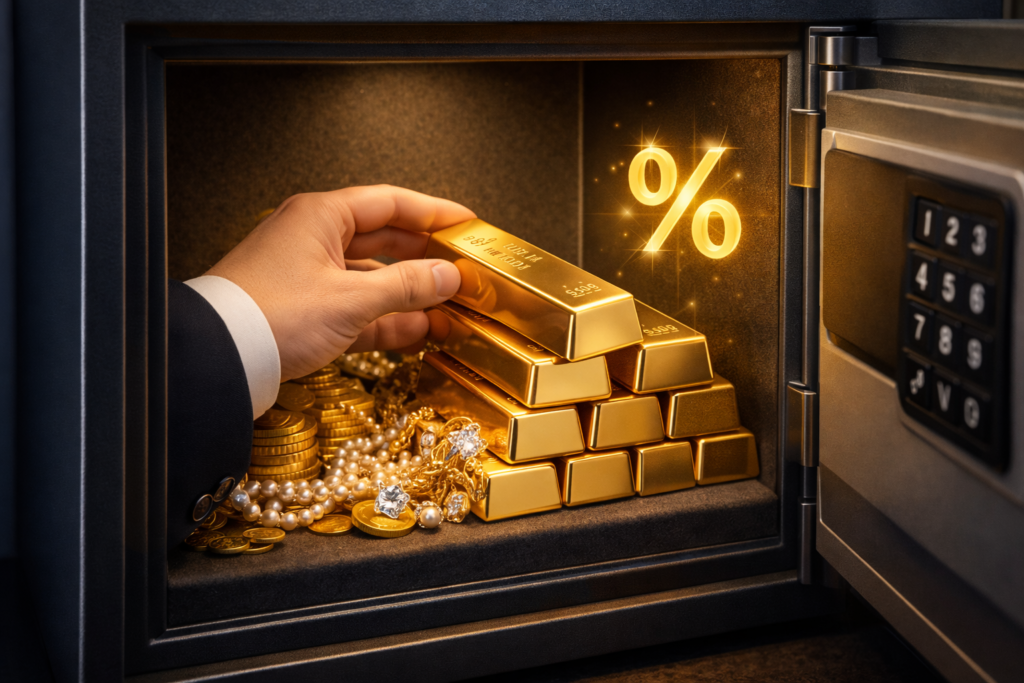 Millions of families across India keep their hard-earned gold—jewelry, coins, or bars—locked away in dark bank lockers. Not only does this gold stay “dead” (not growing in value beyond market rates), but you also have to pay annual locker rent just to keep it safe.